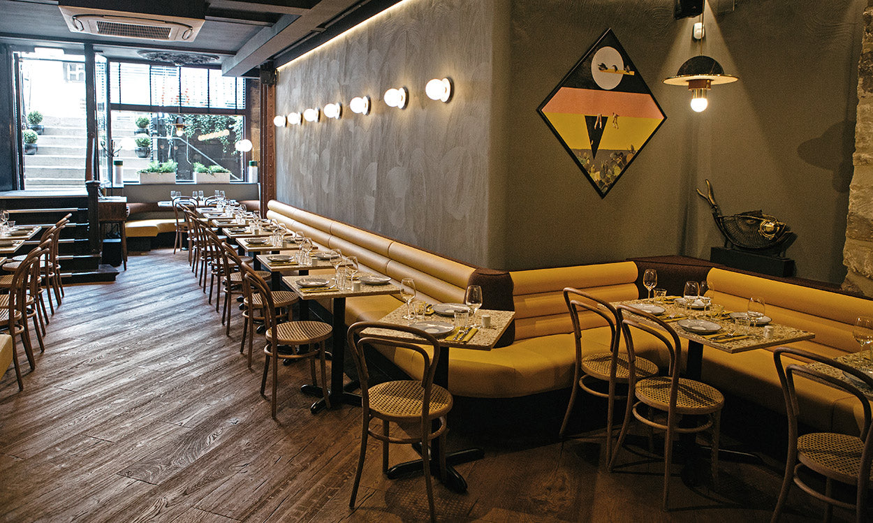I Edinburgh renoverede de 83 Hanover Street-restauranten for at give den et moderne udseende med respekt for arkitekturen. Liila 1 Medium - Opal Hvid / Nordic Gold sætter prikken over i'et i restaurantens gyldne udtryk.