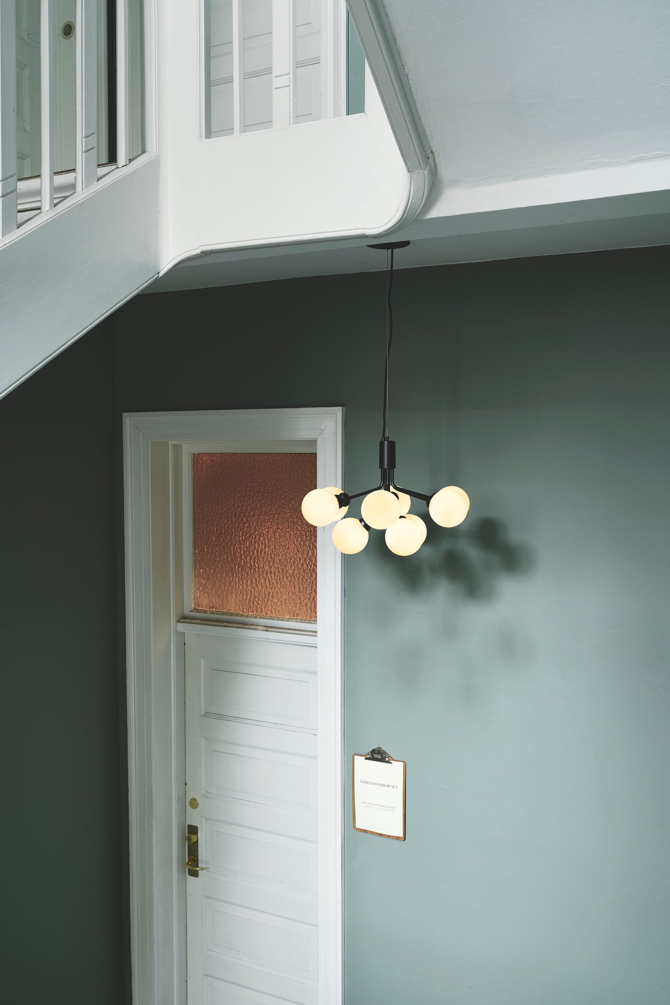Nuura har stået for at skabe en stemningsgivende belysning i Nomad Workspaces lobby område, hvor deres lysekroner skaber en velkommende atmosfære. I det nye spiseområde støtter nøje udvalgte design op om den sanselige og behagelige stemning Nomad ønsker at give deres medlemmer og gæster. Når man går rundt og udforsker fællesarealerne, vil man desuden opleve, at Nuuras lamper skaber behageligt lys ved flere af loungeagtige sidde- og arbejdspladser.