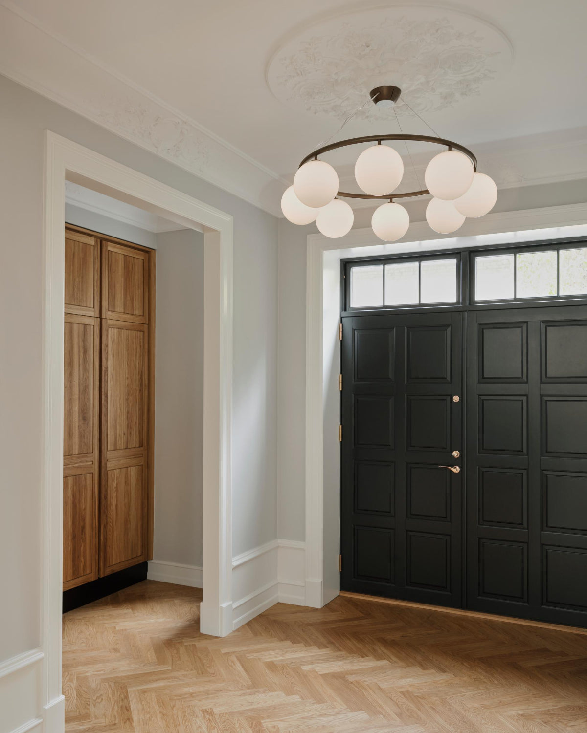 Tag et kig ind i dette eksklusive hjem nord for København, hvor klassisk elegance møder moderne belysning.