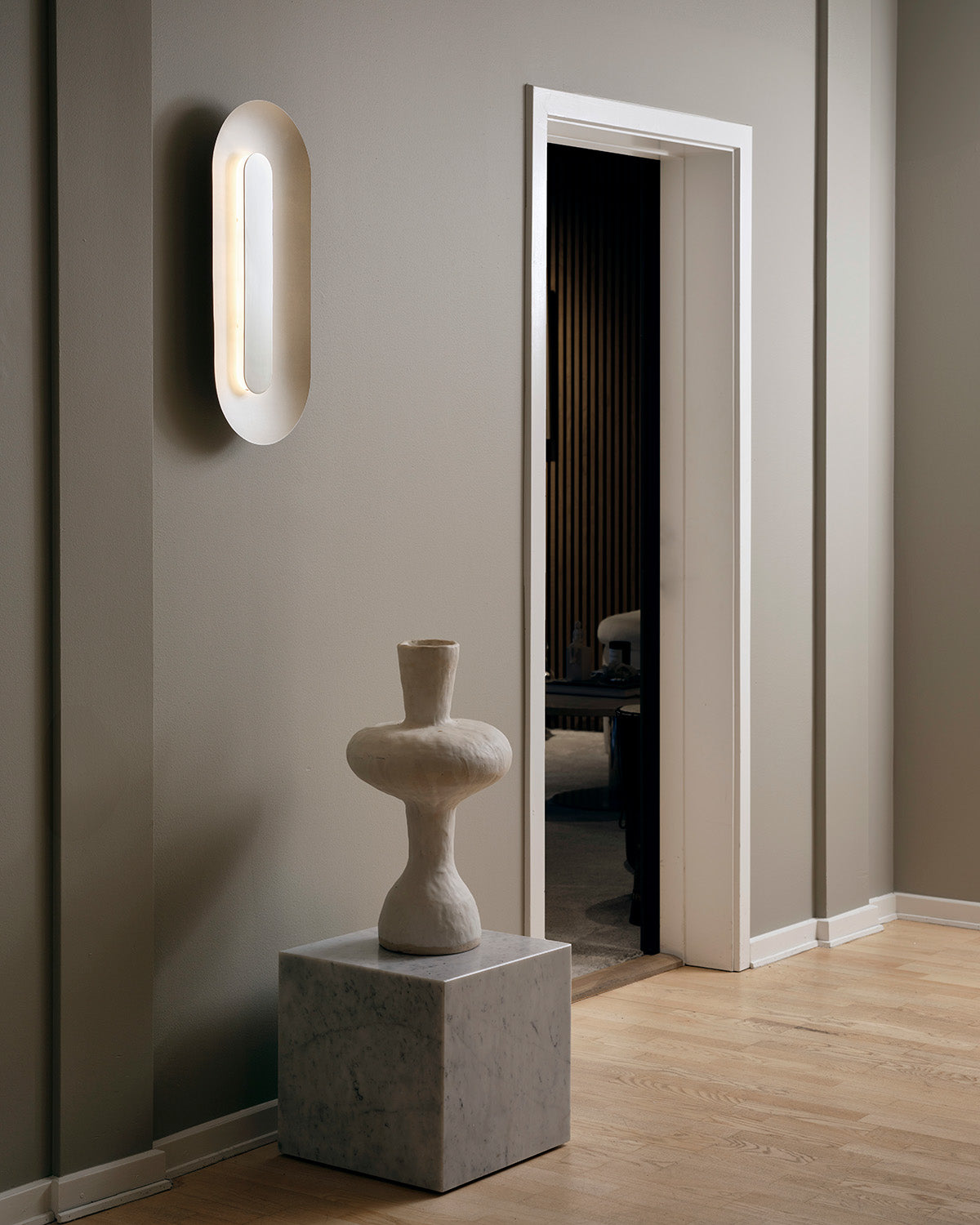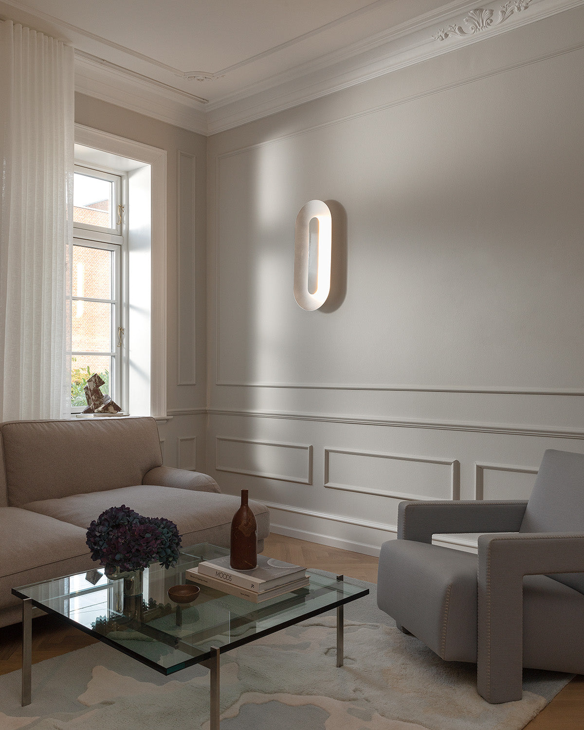 Sasi Large er en sofistikeret designer LED væglampe skabt i samarbejde med Rick Tegelaar. Sasi væglampen er designet med fokus på bløde, afrundede former og rolig, harmonisk belysning. Den store, ovale ramme i satin-sølv finish reflekterer lyset fra det integrerede LED-modul, der er skjult bag en skærm af blankpoleret metal. Skærmens spejlblanke overflade skaber elegante refleksioner af rummets omgivelser. Sasi Large væglampen kan fungere som vægdekoration blandt billeder og malerier i stuen, hvor lampen spreder et blødt og stemningsfuldt lys i rummet.