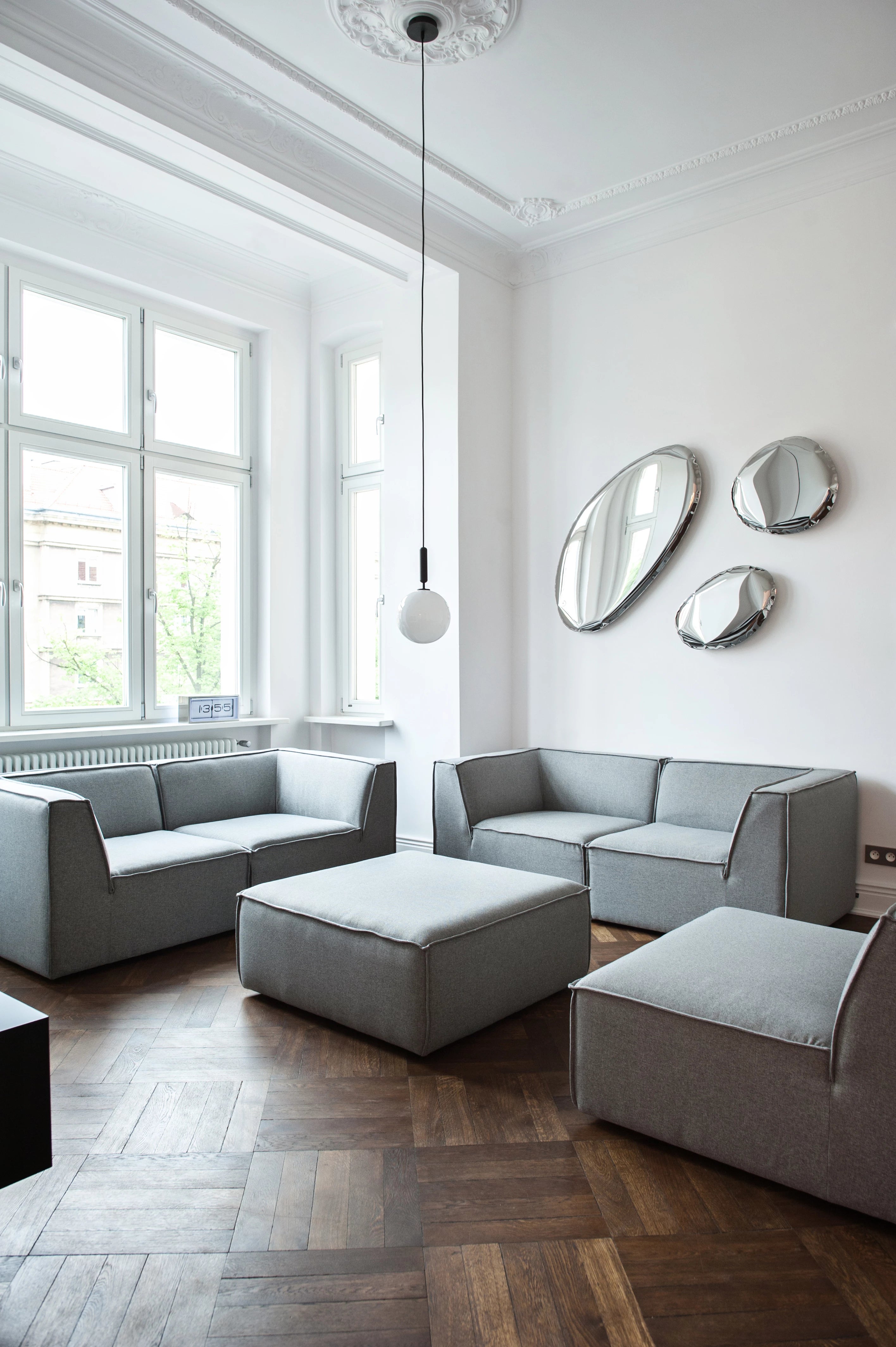 Miira 4 Opal and Miira 1 Large adds a graphic and calm expression in the minimalistic interior setting.