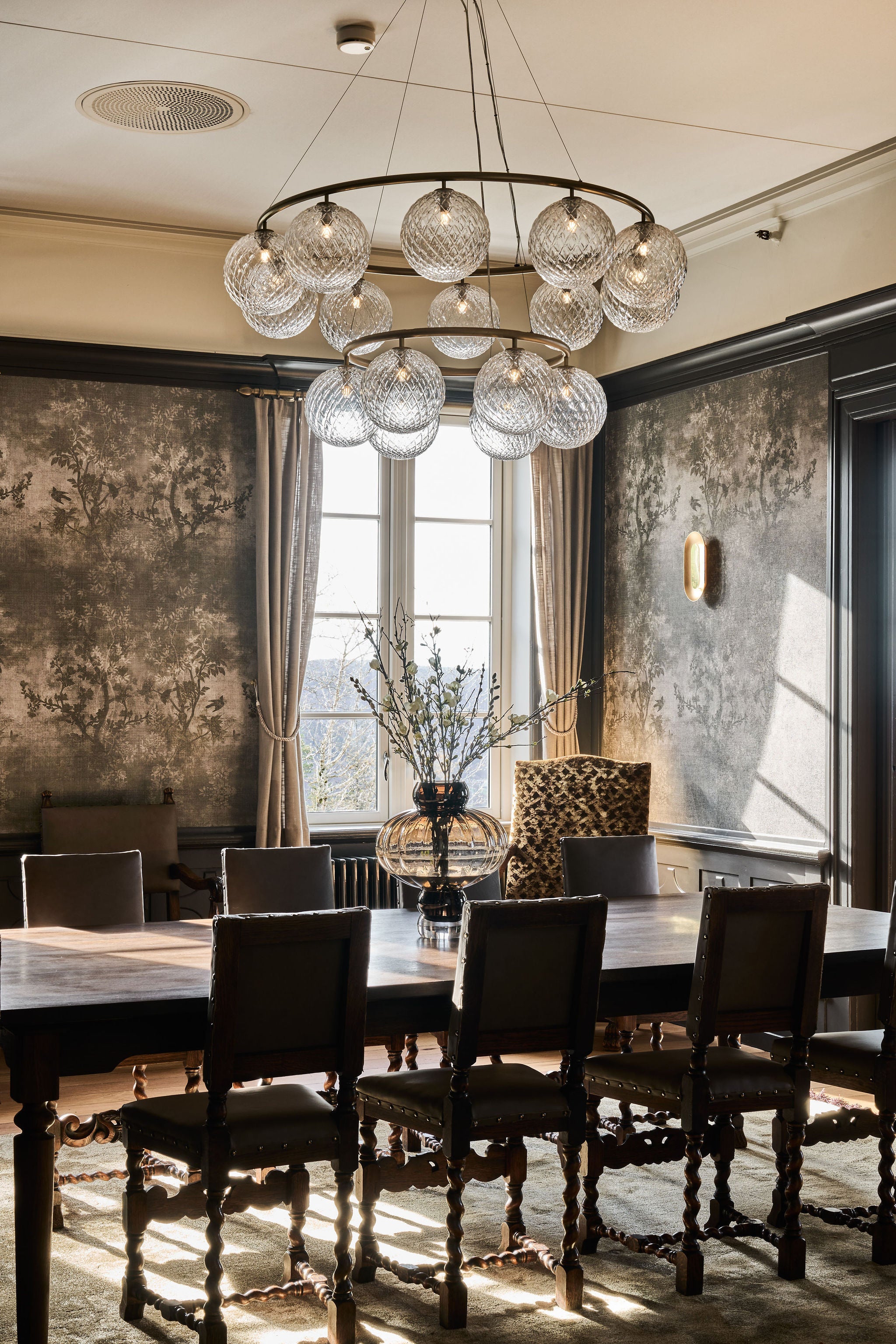 Nuura's lamps and custom chandeliers now grace the restaurant, enhancing its atmosphere with warm, inviting light. These functional fixtures capture the essence of Bergen's serene beauty.