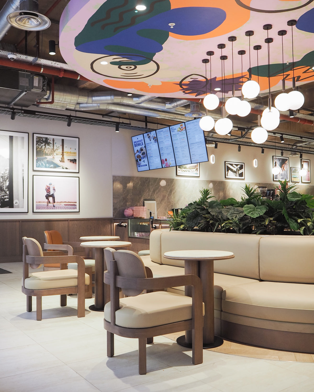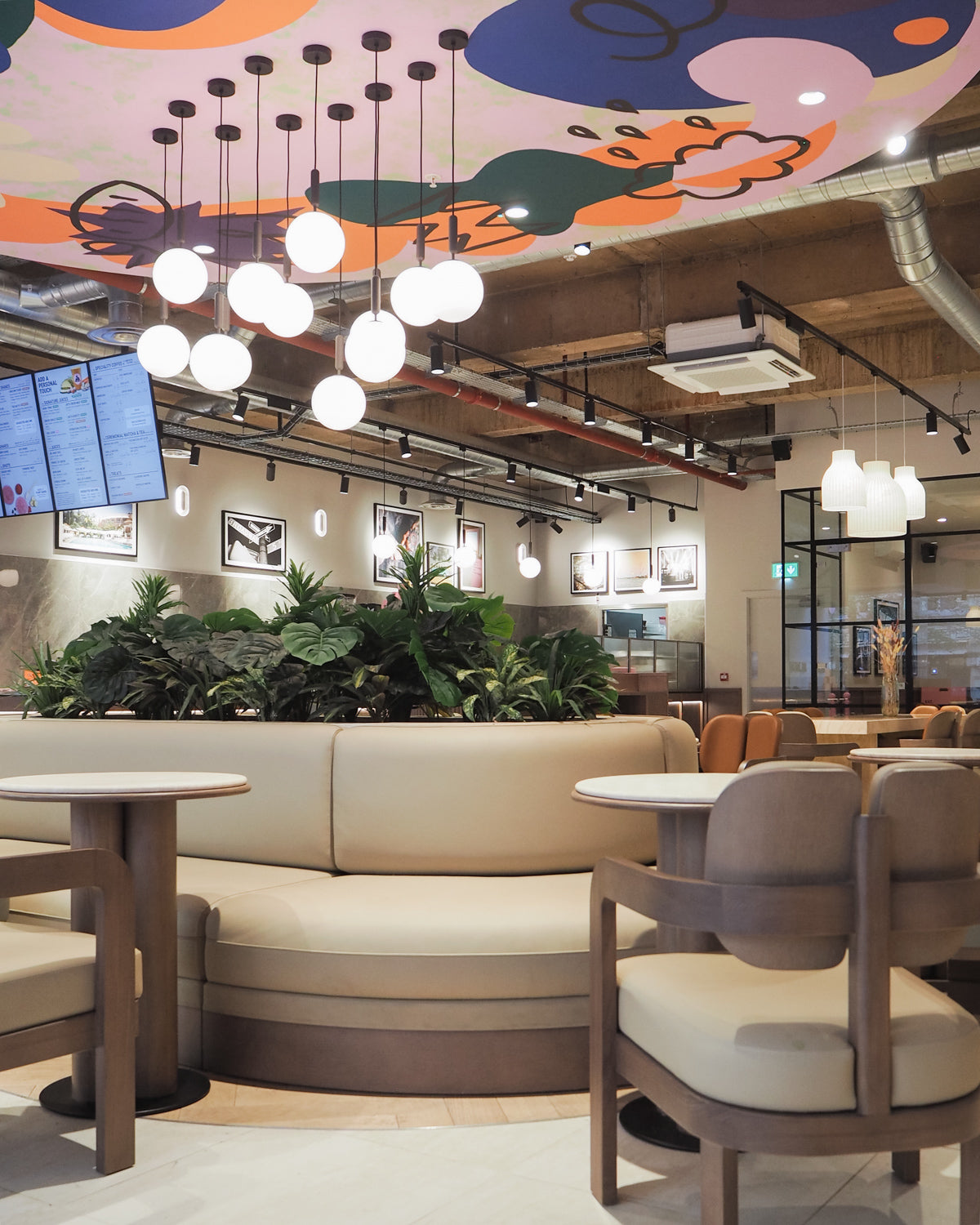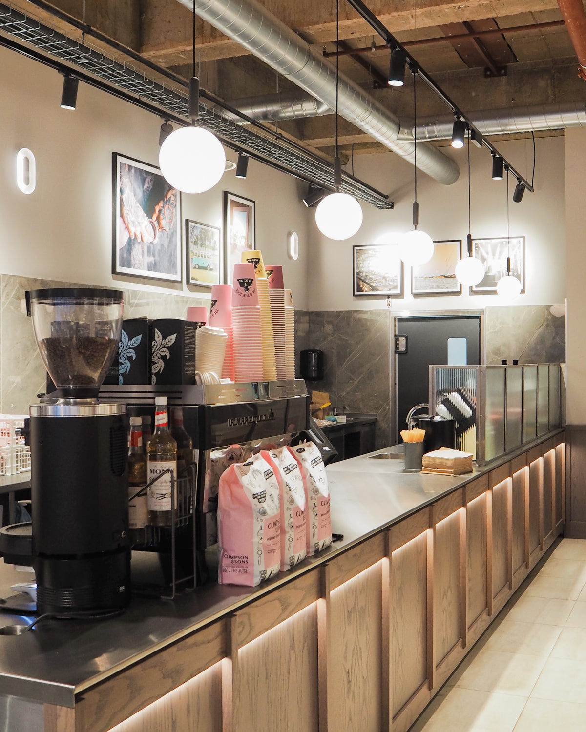 The lighting plays a crucial role in balancing the premium material palette and the energetic vibe Joe & The Juice is known for.