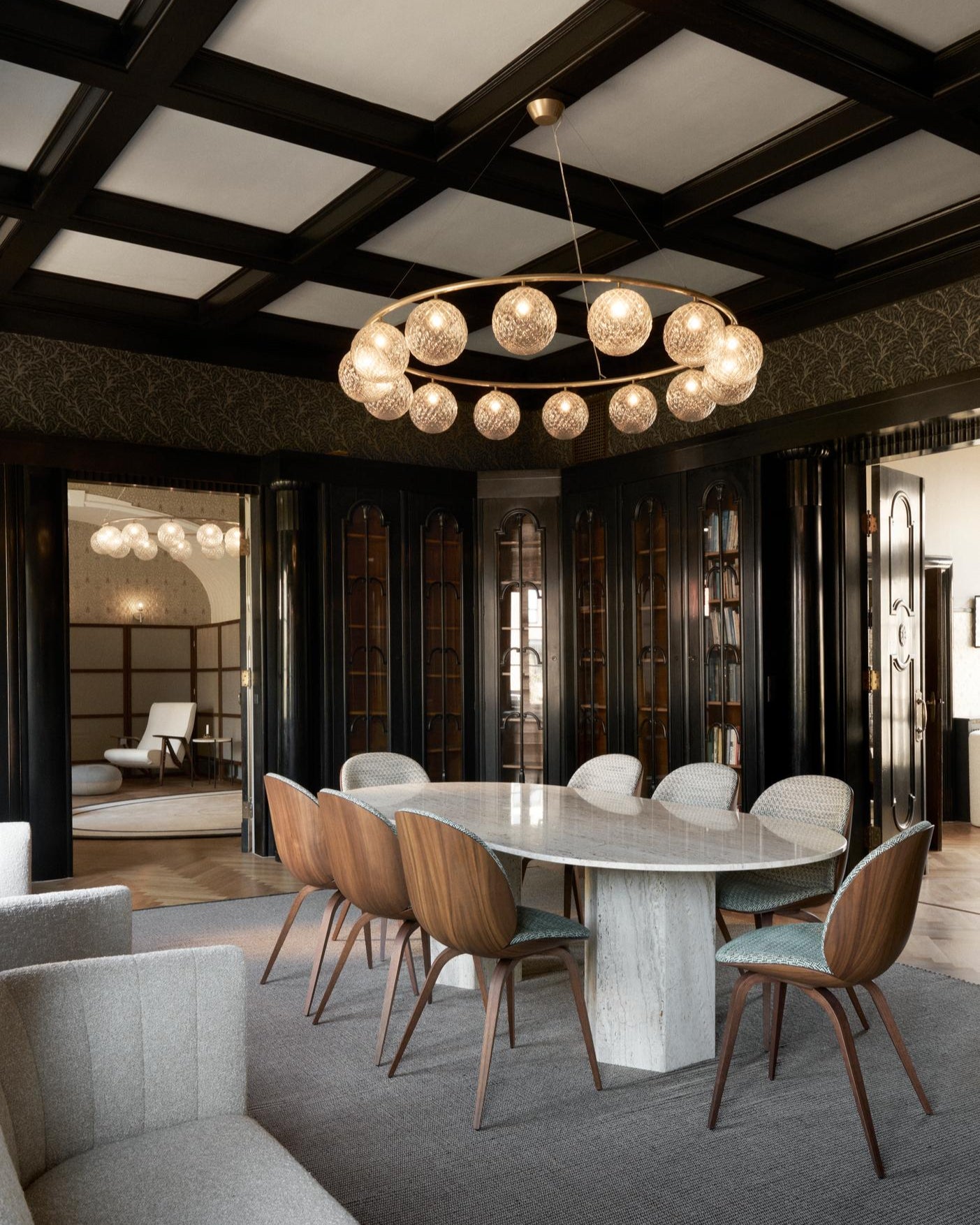 Lighting from Nuura adorns the clinic, creating a pleasant and calming atmosphere with warm, welcoming light. The clinic features lamps from Nuura's renowned collections, including Miira, Liila, Apiales, as well as custom-designed chandeliers.