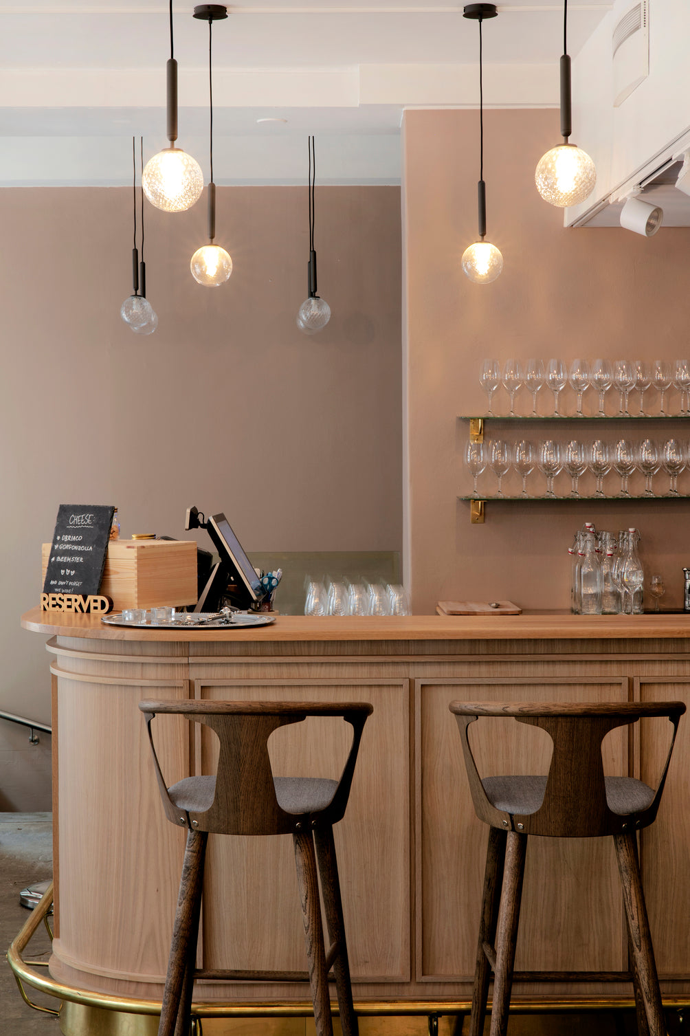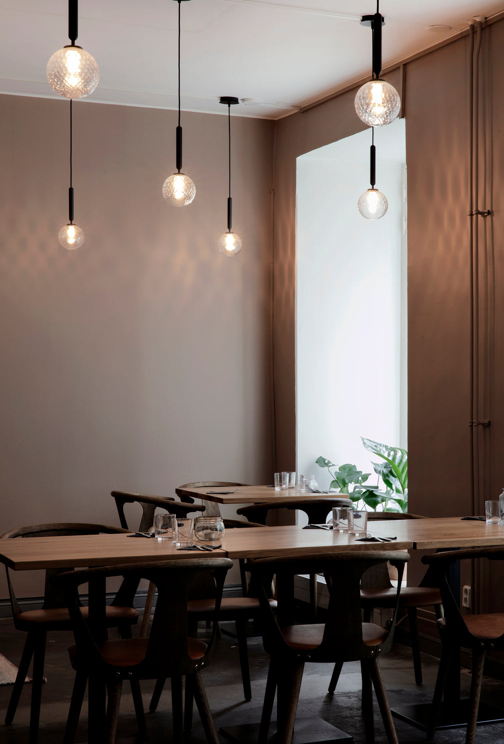 Interior Architect Fanni Suvila from Futudesign teamed up with our partner, Finnish Design Shop. Miira 1 Optic pendants were carefully selected to light up the wine bar at Sofie Future Farm.
