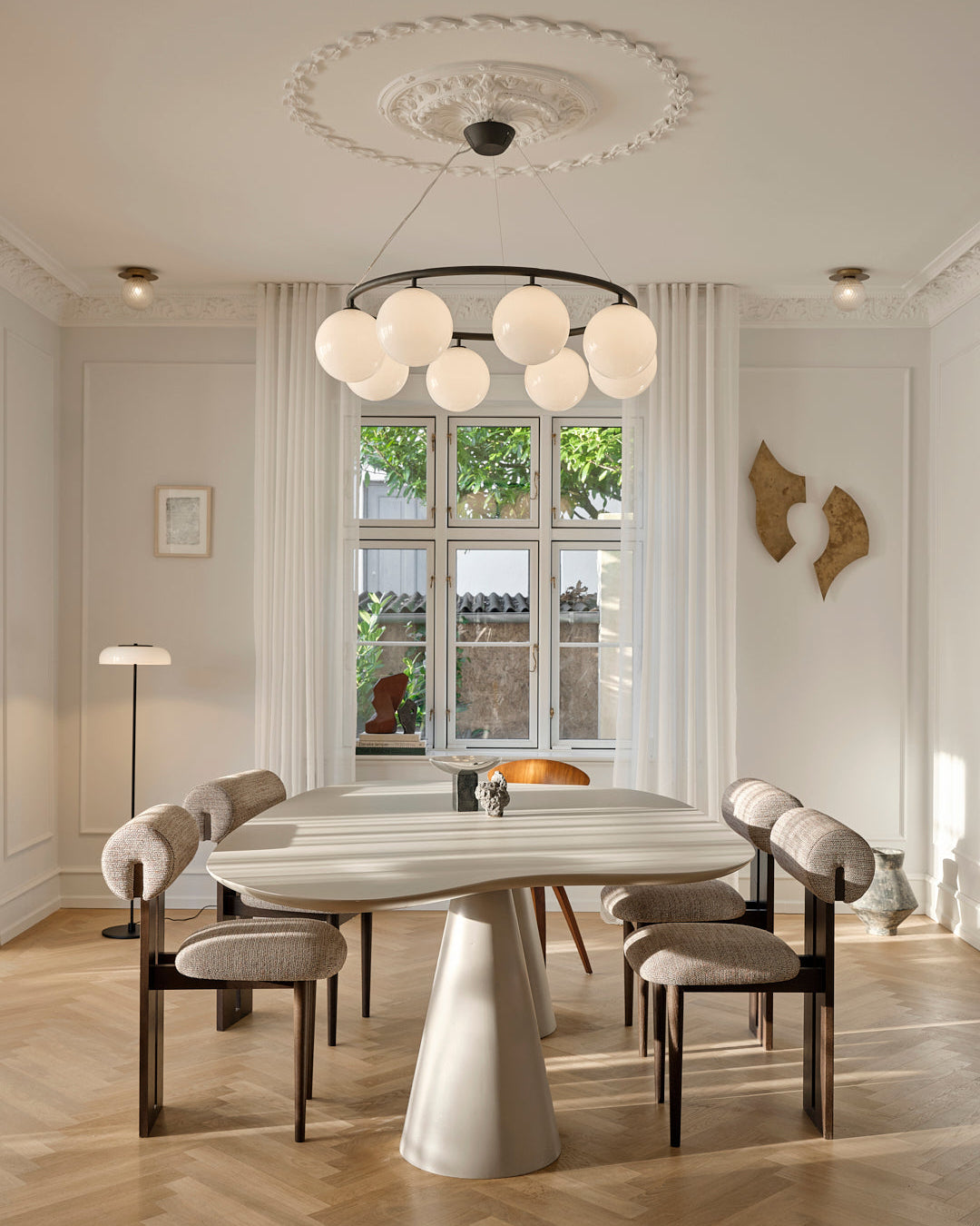 Dining room lighting should strike a balance between practicality and ambience. This involves blending different types of lighting while focusing on the main fixture — usually a pendant or chandelier — as the star of the show.