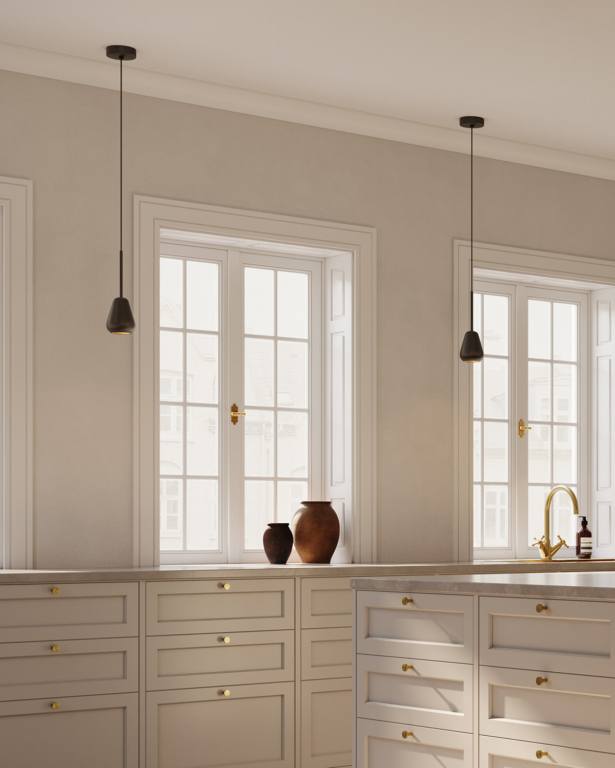 Anoli Spot Pendant is a simple and functional spot pendant. The white metal shade has a soft, drop-shaped silhouette, which adds a subdued look. The pendant also features a golden metal suspension and a black fabric cord, creating a harmonious interplay between form and material.The glare-free light is concentrated and pleasant, making it suitable for task lighting. Anoli Spot Pendant works well in the kitchen, where several pendants can hang in a row over a kitchen island or in other rooms where a focused light is needed.