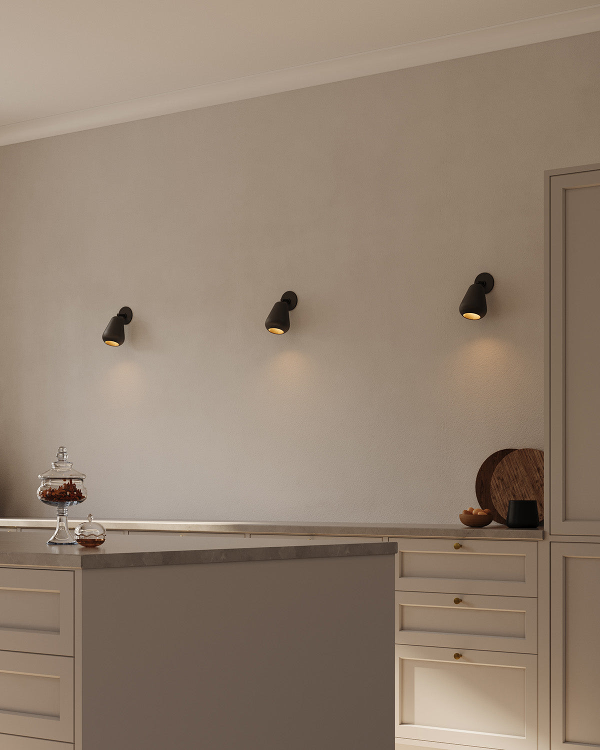Anoli Spot Surface is the ideal lighting solution in rooms where high-quality spotlights are desired. The custom-made metal shade draws references to the elegant silhouette of raindrops and is neatly placed on an adjustable arm. Anoli Spot Surface can be mounted on the ceiling or on the wall, where it will cast a glare-free task light onto its immediate surroundings. Place Anoli Spot Surface in rooms where great task light is desired or in settings where space is at a premium.