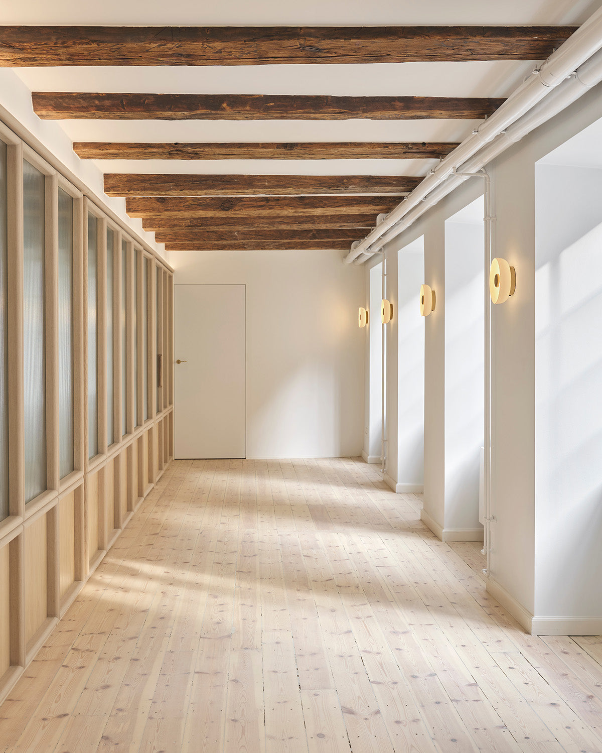 Blossi Wall lamp is designed with a clean circular silhouette. The opal glass and the golden metal finish offer an eye-comforting indirect glow, suggesting the sense of golden light during the Nordic fall. The Blossi collection is produced with an easily replaceable LED card, offering a flicker-free light and meeting the latest EU lighting energy efficiency regulation . The specially developed LED card reflects the light in the opal glass shade and spreads a soft light to the room.