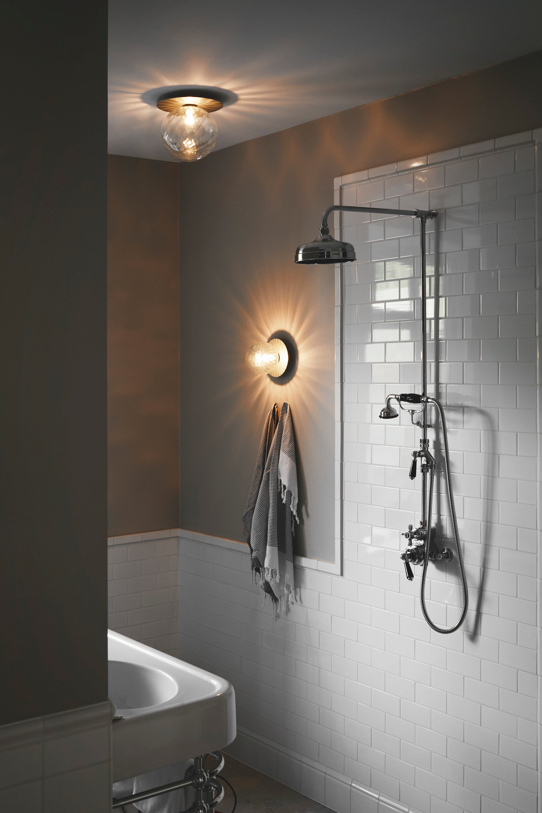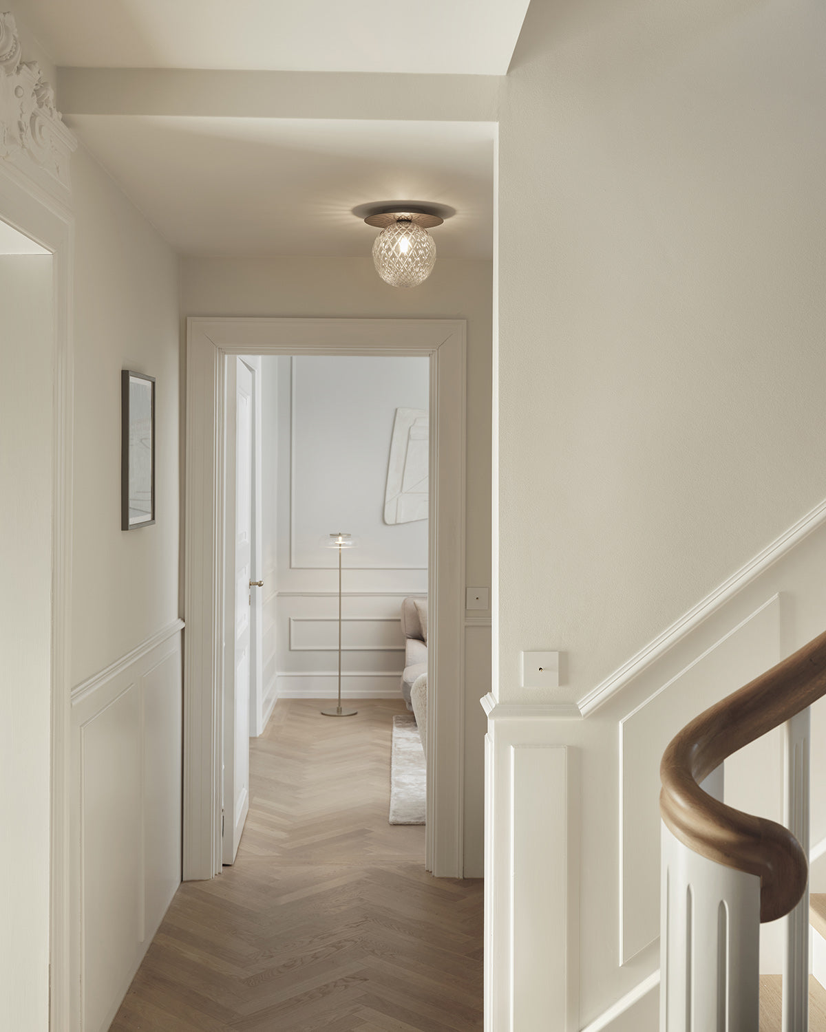 Liila 1 Large offers both durability and optimum lighting. The lamp features a modern design, consisting of a thin round sheet of metal in dark bronze finish and a unique, mouth-blown glass sphere in optic clear. Liila 1 Large is highly relevant in smaller rooms, bathrooms and the entrance hall.