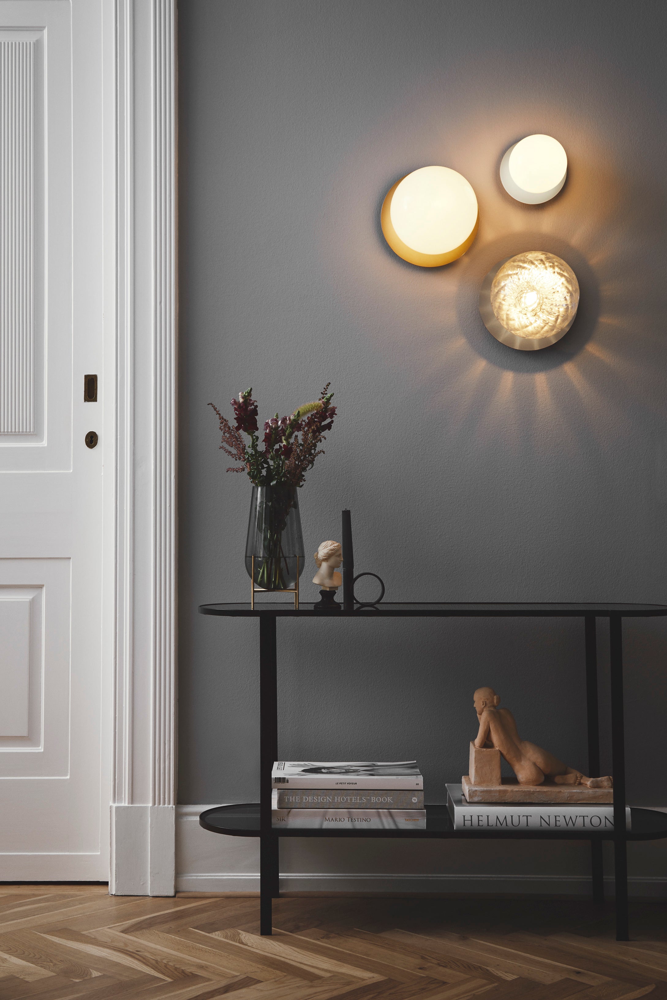 Liila 1 Large is a single lamp for the wall or ceiling. Liila 1 is simple in its form, consisting of a thin round sheet of light silver metal and a clear glass sphere with a cut pattern. Liila 1 Large is ideal as a ceiling light in smaller spaces such as a hallway or walk-in wardrobe. The lamp has an IP44 rating and is approved for installing in the bathroom as well.