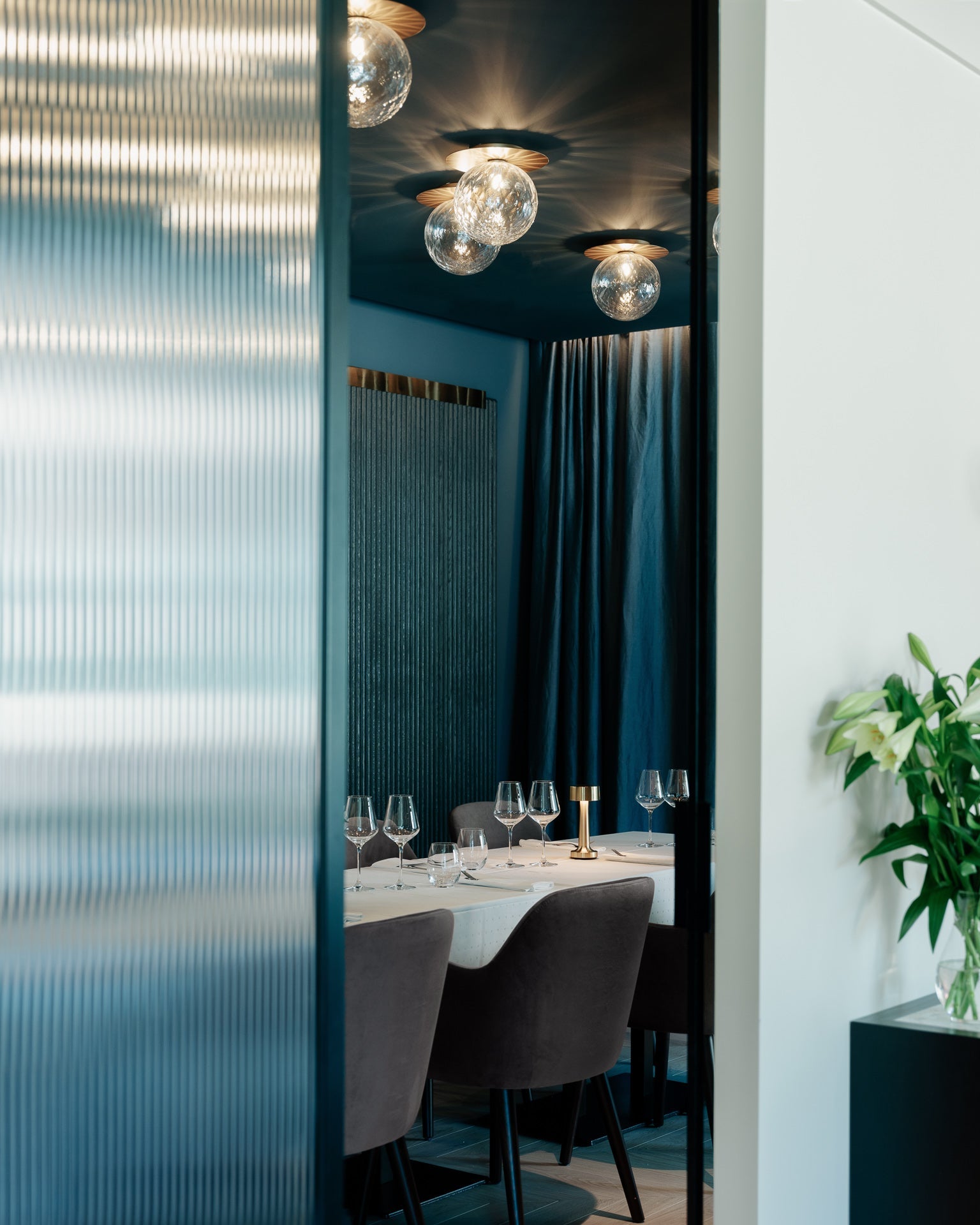 Liila 1 Medium is a single lamp designed for wall or ceiling mounting. With a simple and elegant form, it features a thin, round metal plate in a golden finish and a hand-blown clear glass sphere. Additionally, the lamp has an IP44 rating.