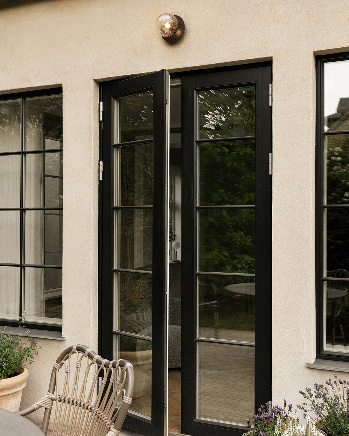 Liila 1 Outdoor is designed as an outdoor lamp and is highly suitable on both walls and ceilings in exterior areas. A thin round sheet of metal in a dark bronze powder coating covers the canopy and gives the optic clear glass globe a floating appearance.Create a welcoming atmosphere with quality light by the front door, on the porch or by terrasse doors with Liila 1 Outdoor.