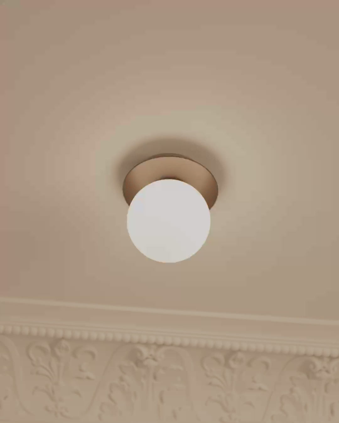 Liila 1 Small is a wall and ceiling light with a soft, light expression. This small wall lamp is designed with a round metal disc in a dark bronze finish and a mouth-blown glass globe in opal white. Liila 1 Small creates a subtle atmosphere in the room where the lamp is placed. All versions of the Liila 1 lamp are IP44-rated and approved for installing in the bathroom.