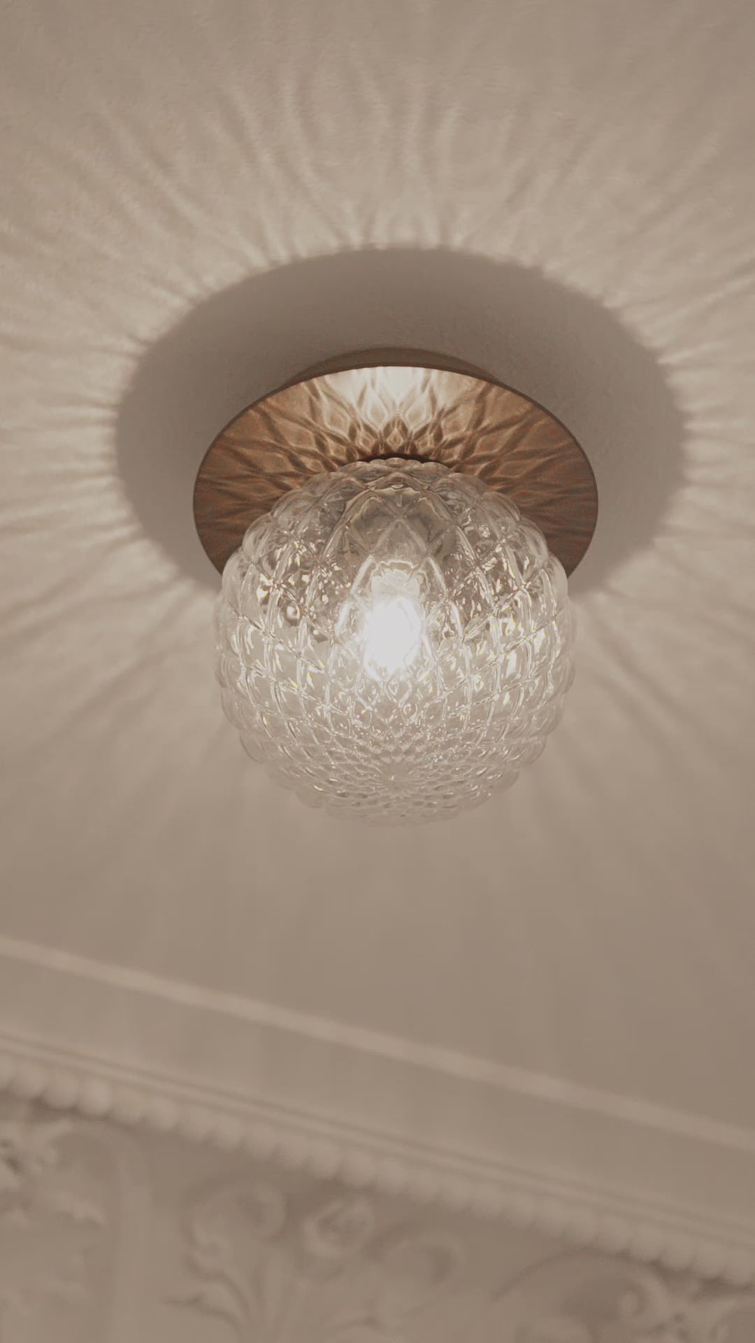 Liila 1 Small is a versatile lamp that can be mounted to both walls and ceilings. The Liila 1 lamp has a simplistic, light design featuring a round metal plate in a dark bronze finish and an optic clear glass globe with an embossed pattern. Brighten up your corner space with ceiling corner lights. Liila 1 Small adds a functional and sensuous light and complements the other types of lighting in the room.