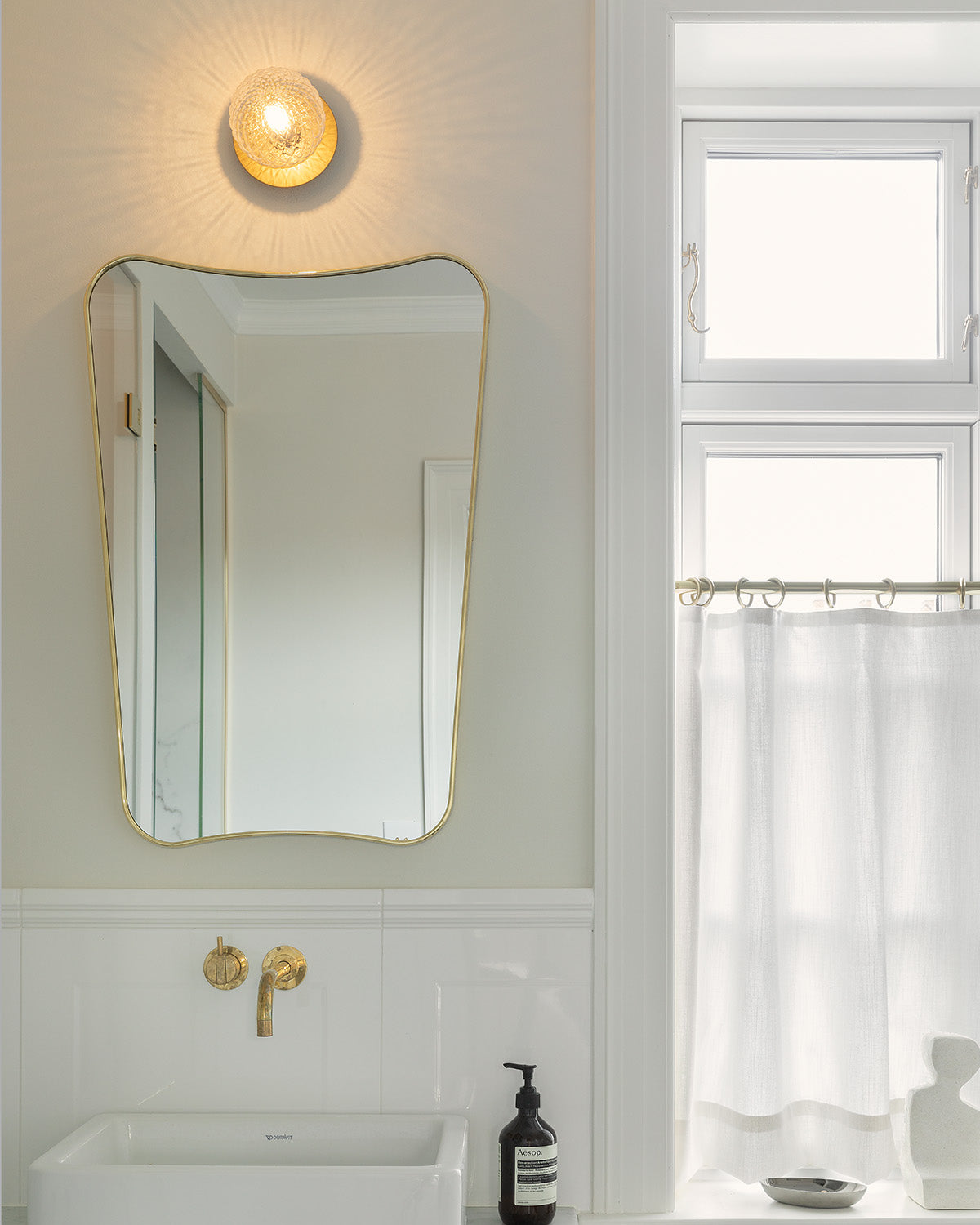 Liila 1 Small is a wall and ceiling lamp in a simple design and Nordic look that suits the modern home. The lamp is created with a round metal sheet in Nordic gold finish and an optic clear glass globe with a decorative pattern from which light is spread with grace.Liila 1 Small is relevant in the corners of a large room, where its light can function as an atmospheric supplement to the other lighting in the room.