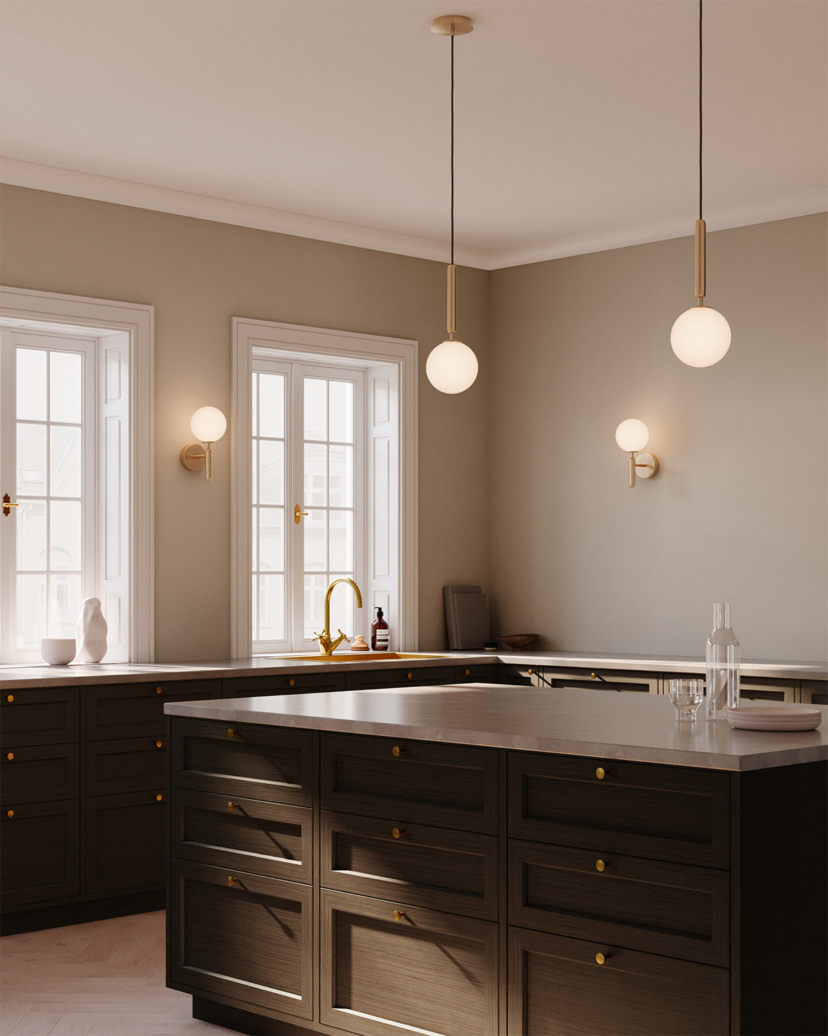 Miira 1 is a single pendant in a minimalistic design with a sleek and stylish expression. The brass coloured metal paired with opal white glass reflects the light softly and makes the fine design curves stand out clear and clean. Use the pendant alone or in a row for a sophisticated lighting solution. Add soft, ambient lighting to any space with Miira 1.