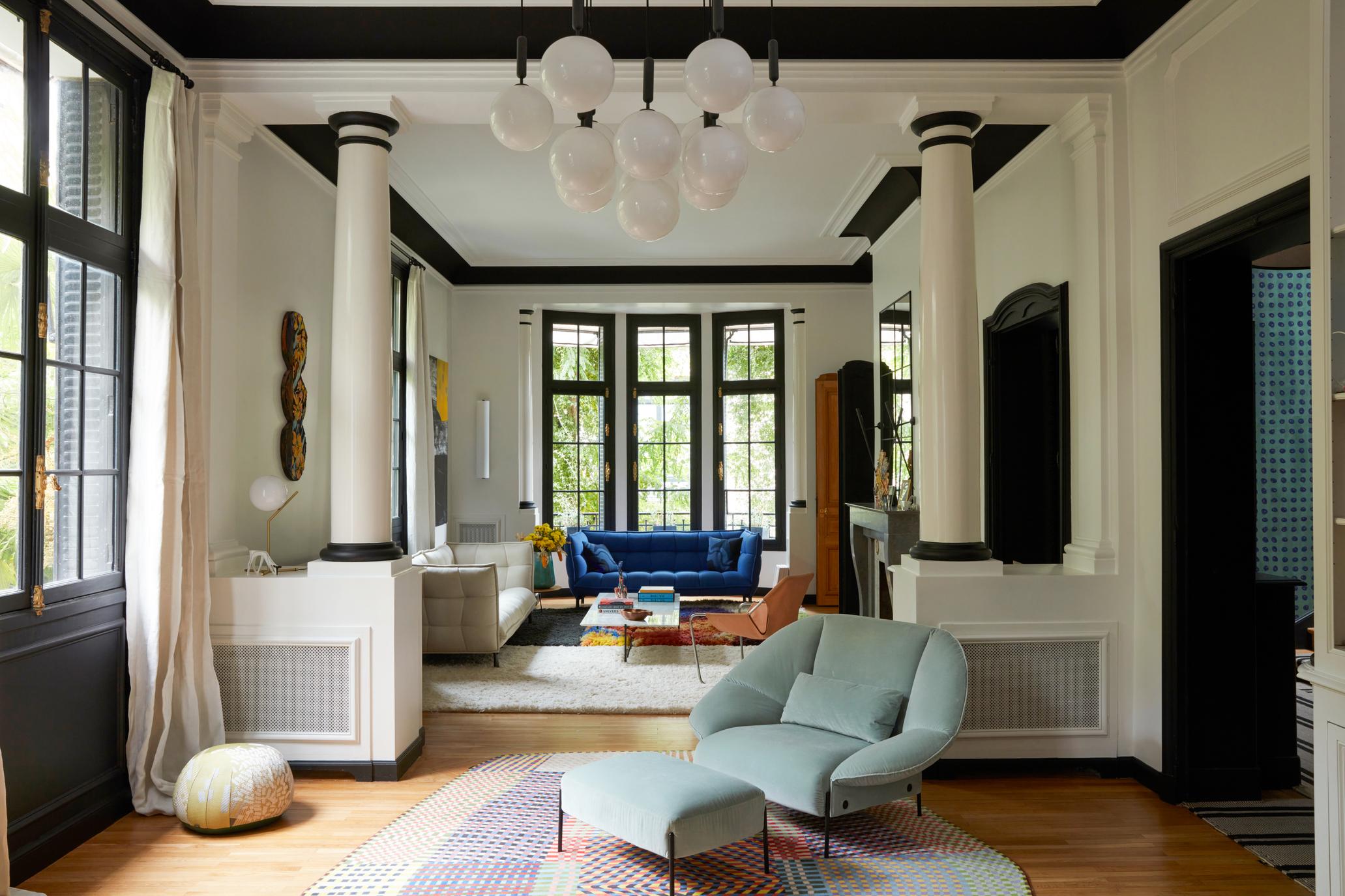 Miira 13 Large is an extraordinary chandelier consisting of 13 single pendants gathered in a large ceiling plate to create the chandelier expression. Each of the 13 single pendants are ample and weighty, and the large glass globes add a bold expression to the room.
