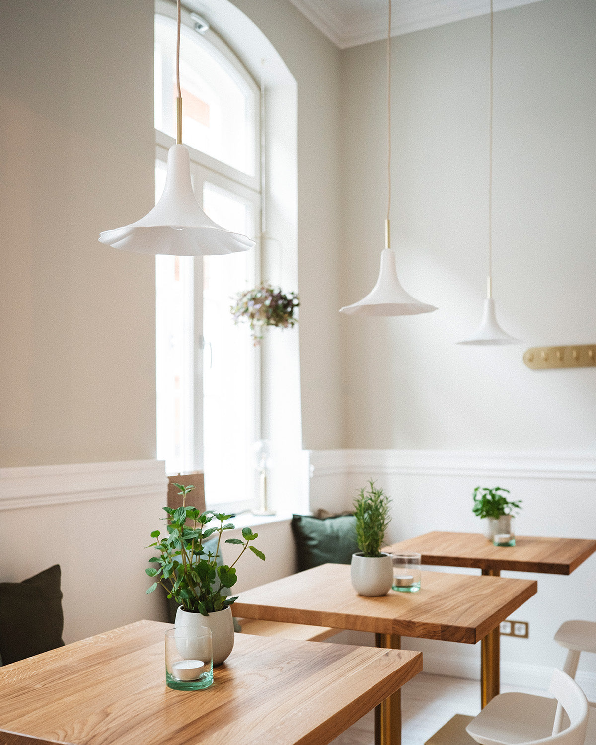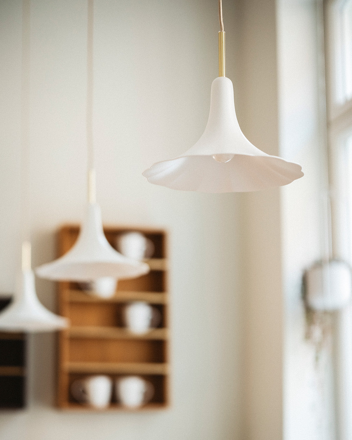 Nika Zupanc has created the Petalii 1 Small pendant for Nuura. The hanging fixture has a poetic expression, and a white, peaceful flower presents itself in this narrative. The lampshade resembles a blooming flower in white metal and features details in polished brass metal finish. The illumination is placed at the heart of the bloom, diffusing a soft light in the shade. Petalii 1 Small is ideal either as a single pendant or installed in a series of multiple lamps.