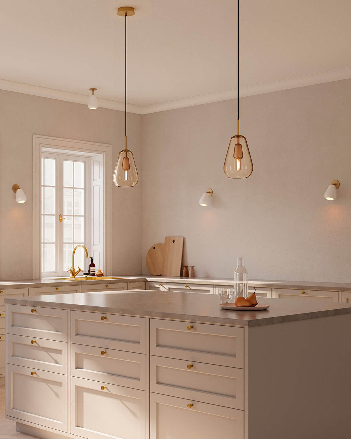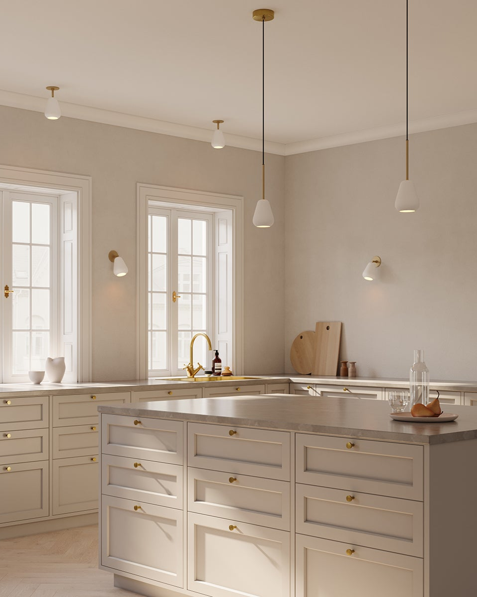 Den primære belysning er den lampe, der giver den overordnede belysning af rummet. Tilføj den primære belysning i dit køkken med pendler, loftlamper eller lysekroner, med opalt glas som skaber en varm, indbydende atmosfære og sikrer, at dit køkken er belyst til enhver lejlighed.