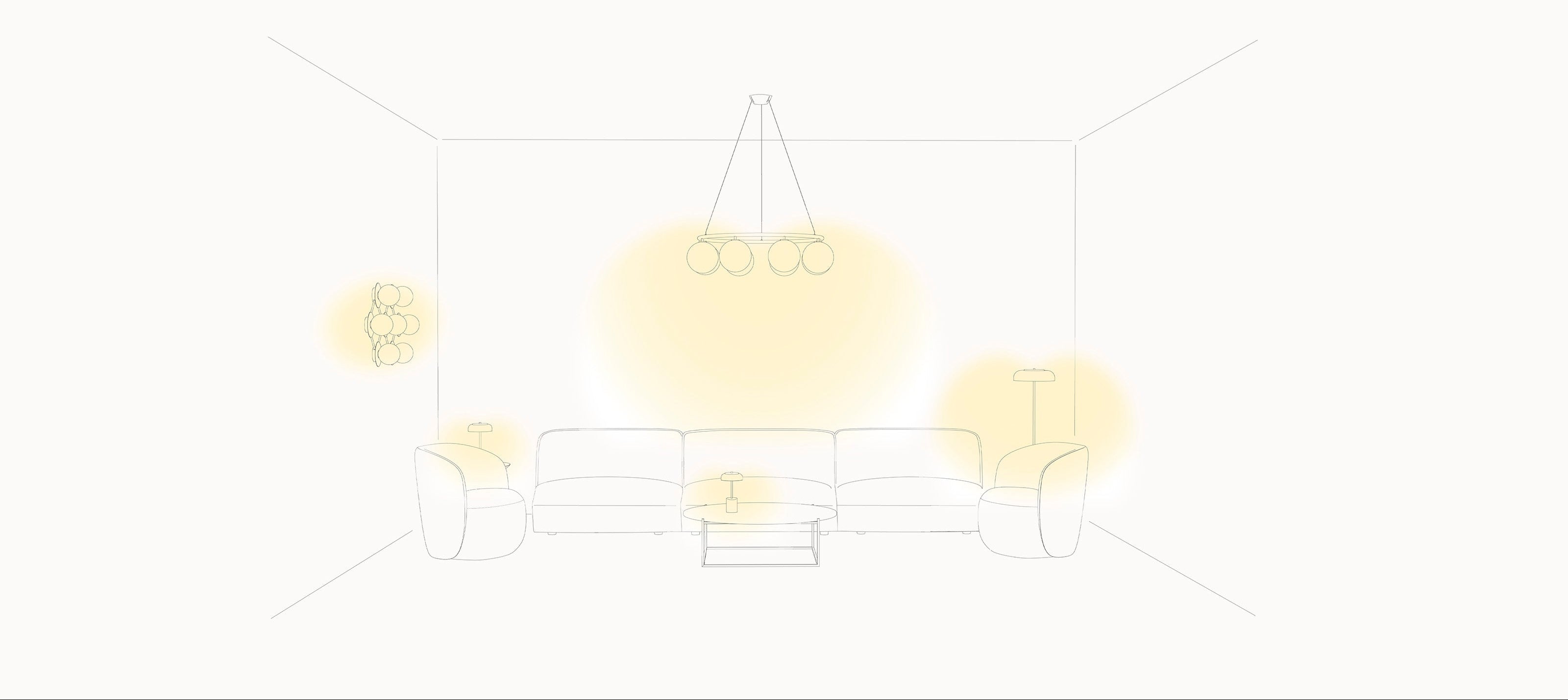 Primær belysning er rummets generelle belysning og bør give nok lys til, at du kan bevæge dig rundt og nyde rummet komfortabelt. I stuen bør det primære lys være blødt og jævnt fordelt for at undgå skarpe skygger.
