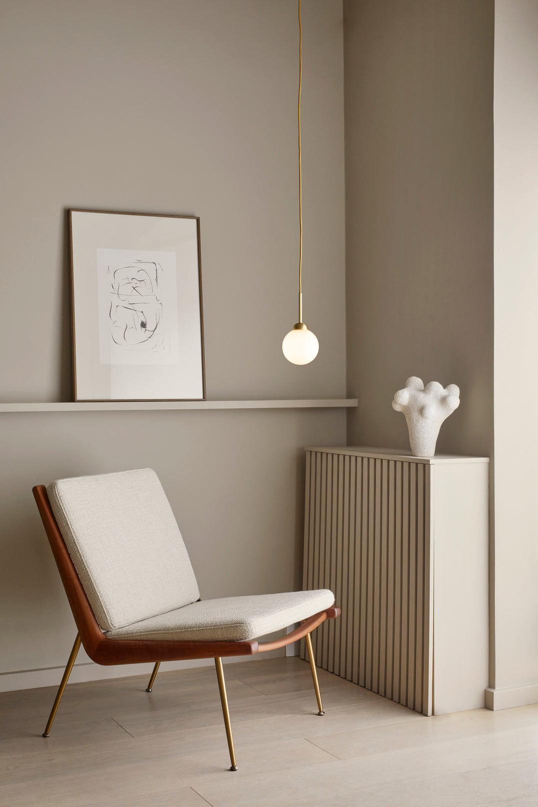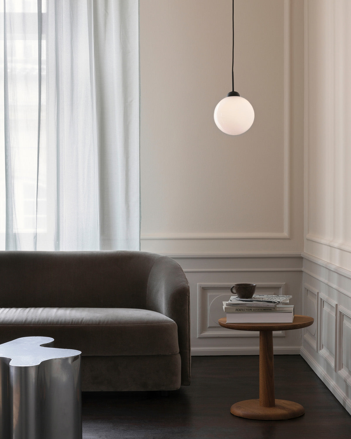Apiales 1 er en minimalistisk og tidløs pendellampe. Det enkle design understreges af et slankt lampeophæng og en lille mundblæst glaskuppel, hvorfra lyset spredes ensartet til alle sider. Kombinationen af sort metal og opalhvidt glas giver lampen et klassisk udtryk, og gør den anvendelig i mange forskellige indretningsmiljøer. Apiales 1 er oplagt som belysning over et spisebord eller i hjørnet over en sofa i stuen. Pendlen kan også hænges i par eller flere, da dens lille udformning ikke optager meget plads eller forstyrrer udsynet, f.eks. over et spisebord.