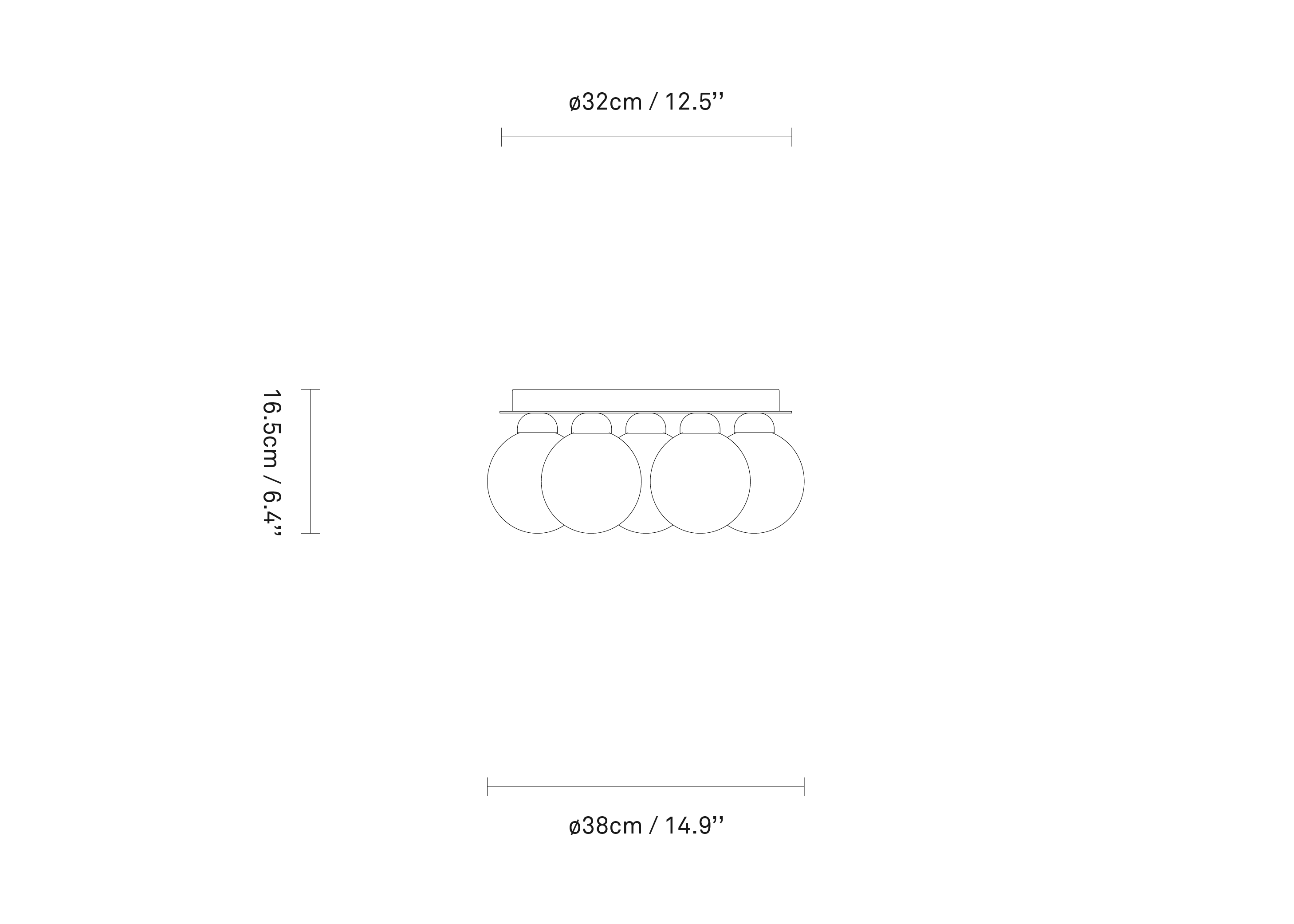 Apiales 7 Plafond er en nyfortolkning af den klassiske lysekrone, og indgår som en del af Apiales kollektionen. Loftslampen består af en rund metalplade, hvorpå 7 glaskupler er monteret tæt sammen og reflekterer lyset i den gyldne loftsplade. Det simple design komplementeres med det detaljerede udtryk fra de optisk klare glas i transparent guld, som er præget med et ternet mønster indvendigt i glasset, der skaber et fint spil af gyldent lys. Apiales 7 Plafond er velegnet til mindre rum og rum med lav loftshøjde, hvor man ønsker et lysekroneudtryk.