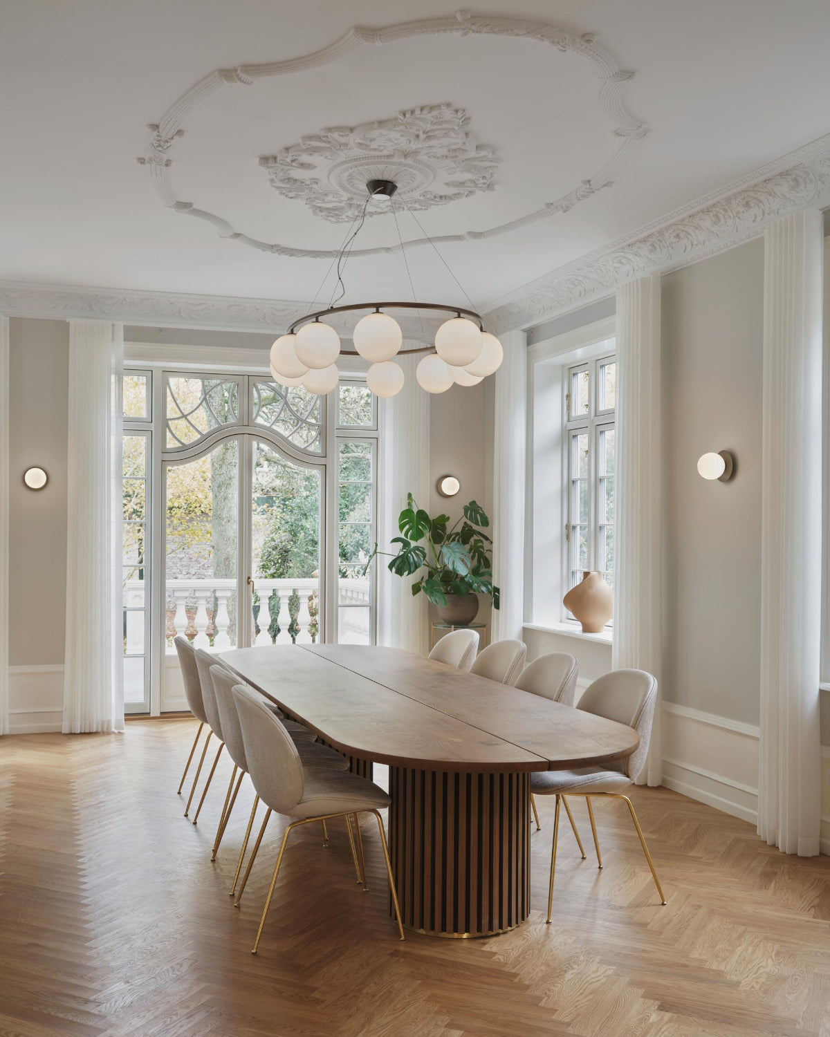 Liila 1 Medium er en enkelt lampe, der fungerer både som væg- eller loftlampe. Lampen er enkel i sin form, bestående af en tynd, rund metalplade i mørk bronzefinish. En mundblæst opalhvid glaskugle kaster et blødt, omgivende lys og giver lampen et svævende udseende. Liila 1 Medium er velegnet i mindre rum eller rum med lavthængende lofter, hvor en lampe i ledning måske ikke vil fungere.