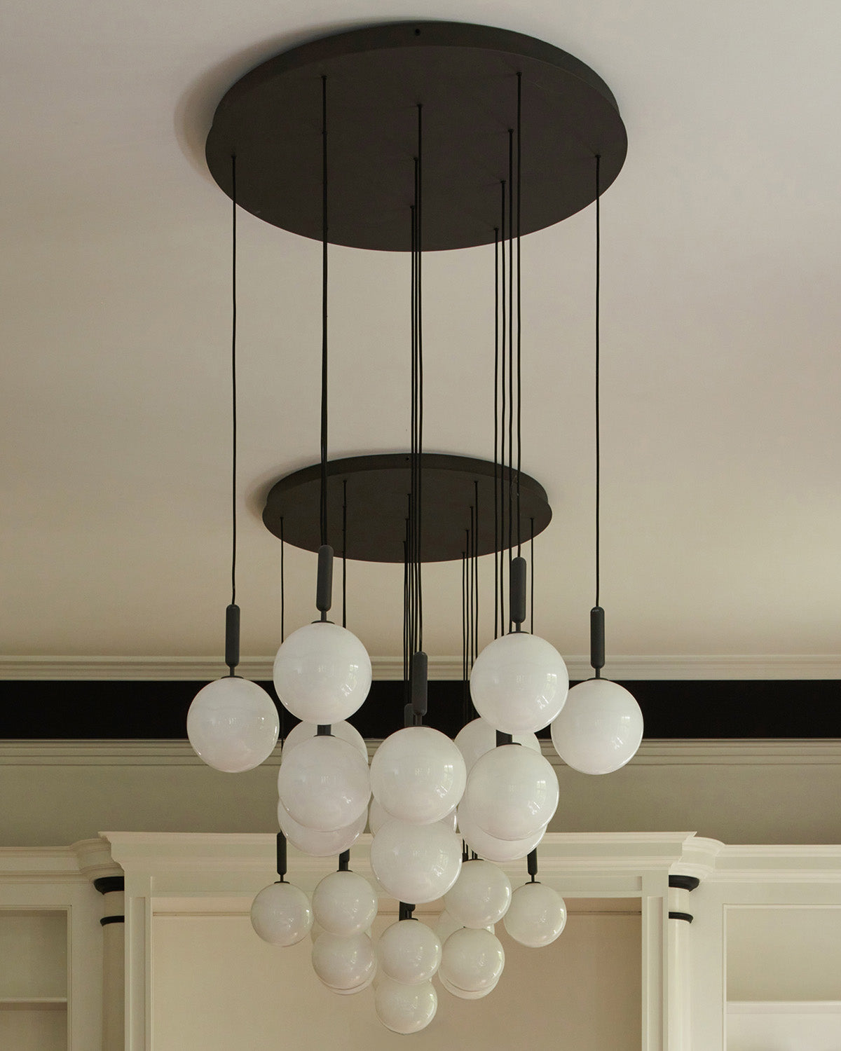 Miira 13 Large er en iøjnefaldende lysekrone bestående af 13 enkelte pendler samlet i én stor loftplade, hvorfra lysekroneformationen kommer til udtryk. De 13 pendler har tyngde og fylde, og de store glaskugler giver et mere kraftigt udseende end de lette og slanke pendler fra standard Miira-serien. Miira 13 Large lysekronen er velegnet som centerpiece i en stor hall, hængende over en trappe eller i rum med højt til loftet.