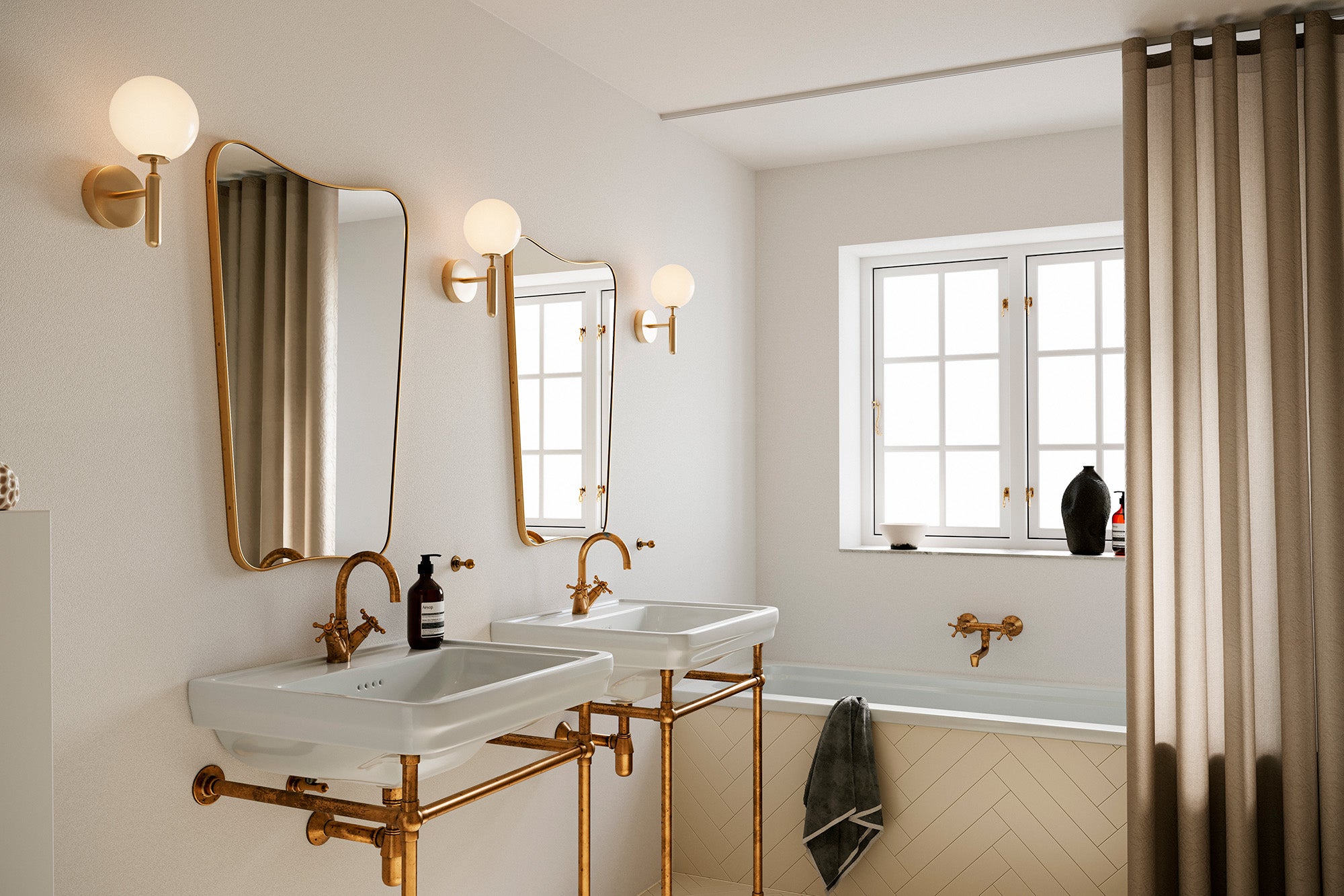 Miira Wall er en enkel væglampe i et rent design men med stor sans for detaljen. Det messingfarvede metal suppleres med et opalhvidt glas, der tilføjer et roligt og subtilt udtryk til rummet. Bemærk at kabel ikke medfølger.