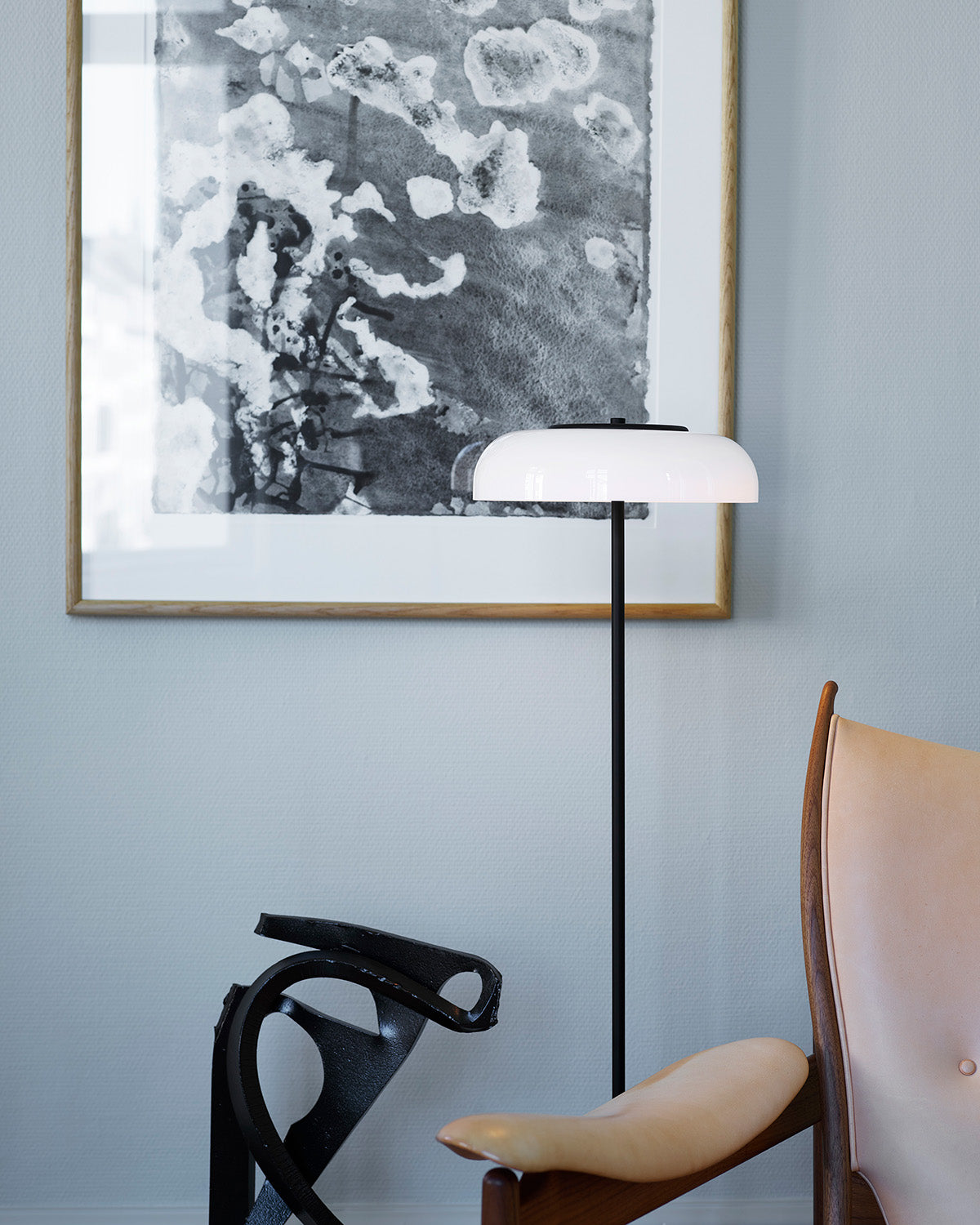 Blossi Floor is designed with a sleek black metal structure and an opal glass shade. A special developed LED disc reflects the light in the mouth-blown glass shade, spreading a soft and indirect light. The Blossi collection is produced with an easily replaceable LED card and offers a flicker-free light. With a combination of simplicity, aesthetics and functionality, Blossi Floor can be placed in any room of the home. Cable with dimmer and EU + UK plug.