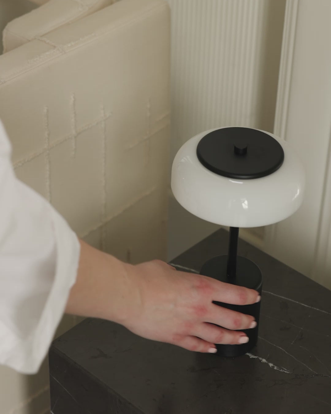 Blossi Table Mini expands the possibilities of illuminating any setting, indoors and outdoors, with its portable LED light that is easily recharged by USB-C . Let Blossi Table Mini set the mood at the coffee table, at impromptu dinners, or in a cherished corner where the soft light gently diffuses from the opal shade creating a warm and inviting glow.